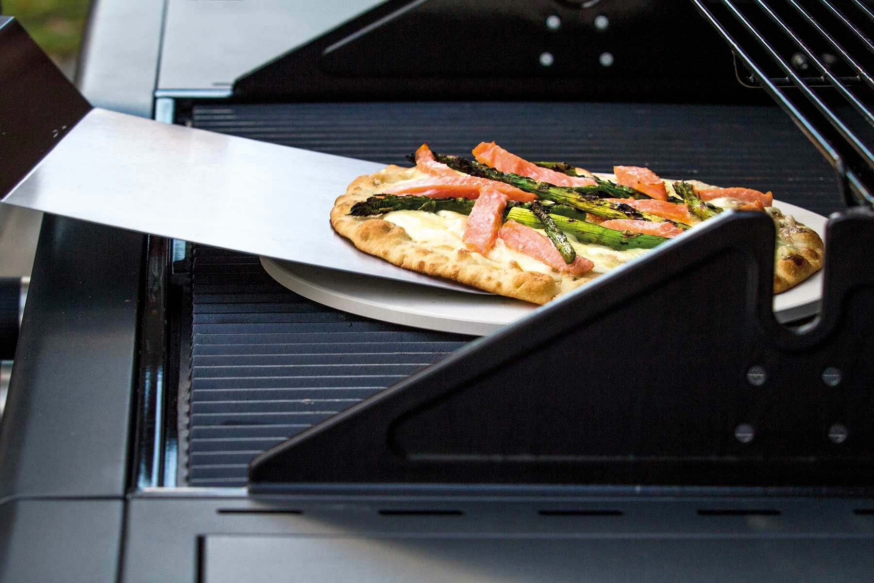 Vilja kommer med en frontplate som kan monteres enten som en hylle eller en ordinær frontplate. Ved å montere dette som en frontplate vil du skjule grillens bunn. Ved å montere dette som en hylle får du muligheten til å oppbevare eller sette fra deg ting under grillen. Hvordan du ønsker å montere platen velger du selv ut i fra dine behov. Monteringen gjøres enkelt på et par minutter, og du kan endre dette på et par minutter om du skulle ombestemme deg.