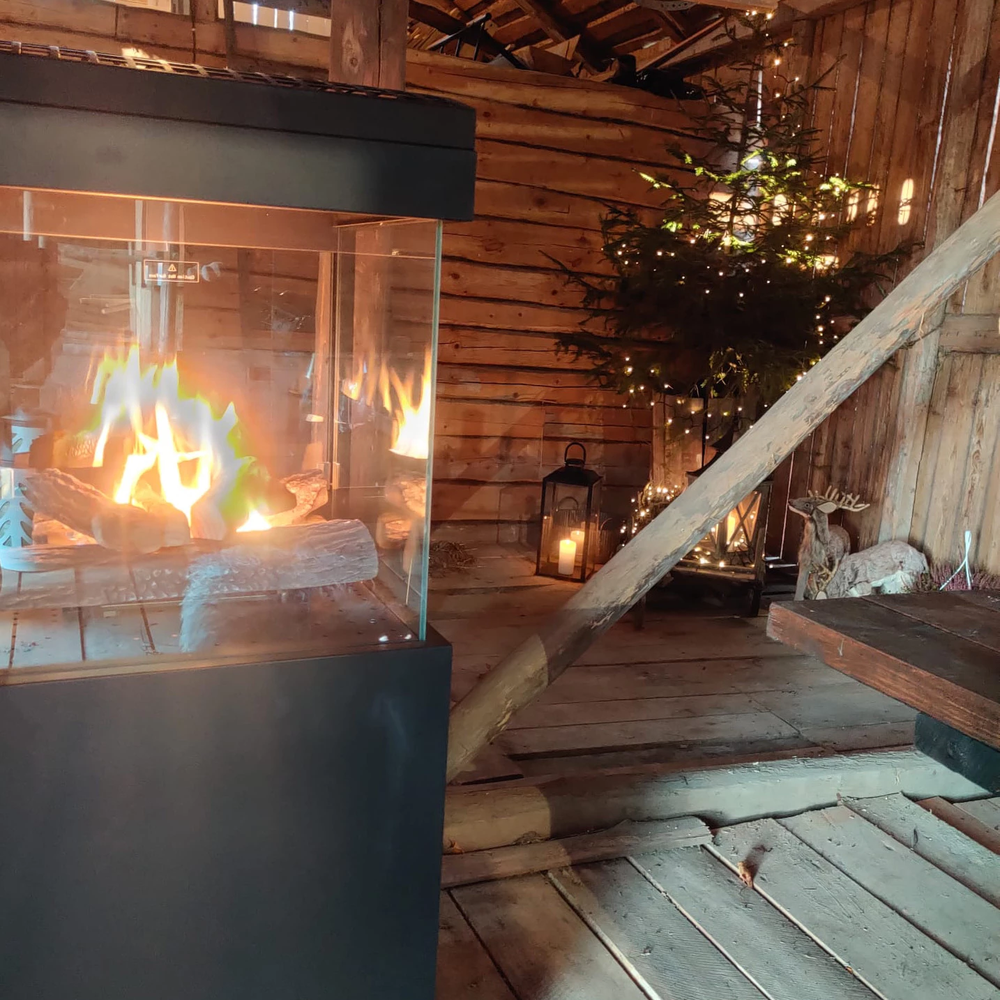 I tillegg til et koselig flammebilde gir peisen en deilig og høy varmeeffekt. Peisen har fire hjul og et håndtak i bakkant som gjør den enkel å flytte. Glasset er temperert og peisen er i meget god kvalitet. Ett sett keramiske kubber for hyggelig stemning medfølger. Det er plass til gassflasken i skapet under peisen.