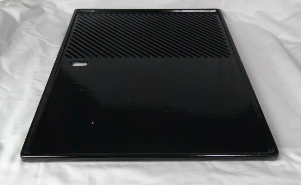Grillplate i emaljert støpejern. 39 x 48 cm.