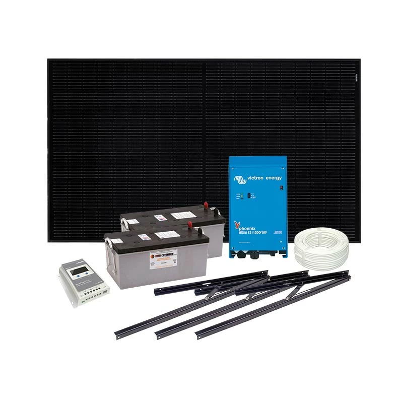 Få 230 volt strøm i alle stikkontaktene på hytta uten skjemmende kraftledninger! Ved hjelp av en omformer omgjøres likespenningen i ditt 12 volts solcellebatteri til vanlig 230 volts vekselspenning. Pakken leveres komplett med alle komponentene i en kraftpakke, men må monteres opp på egnet sted av installatør.