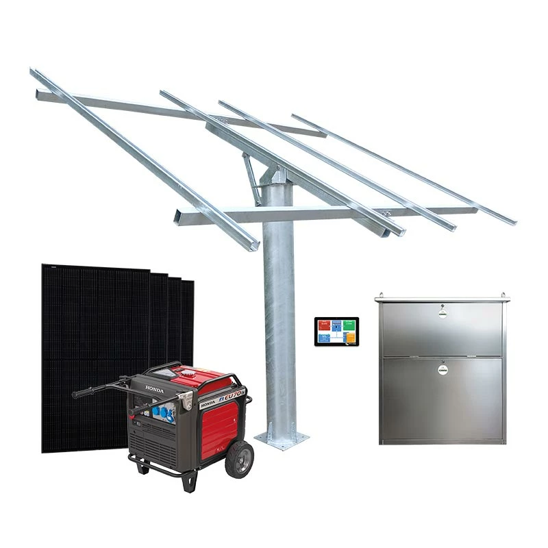 Aaggregatpakke Honda 70is inkludert. Strøm fra generator må kables fremt til skapet, men selve styringen av generator skjer trådløst slik at generator kan plasseres i en omkrets av inntil 100m fra selve skapet. Med denne løsningen starter og stopper generator etter behov og den kan også styres fra kontrollpanel inne i hytta eller fra egen App.
