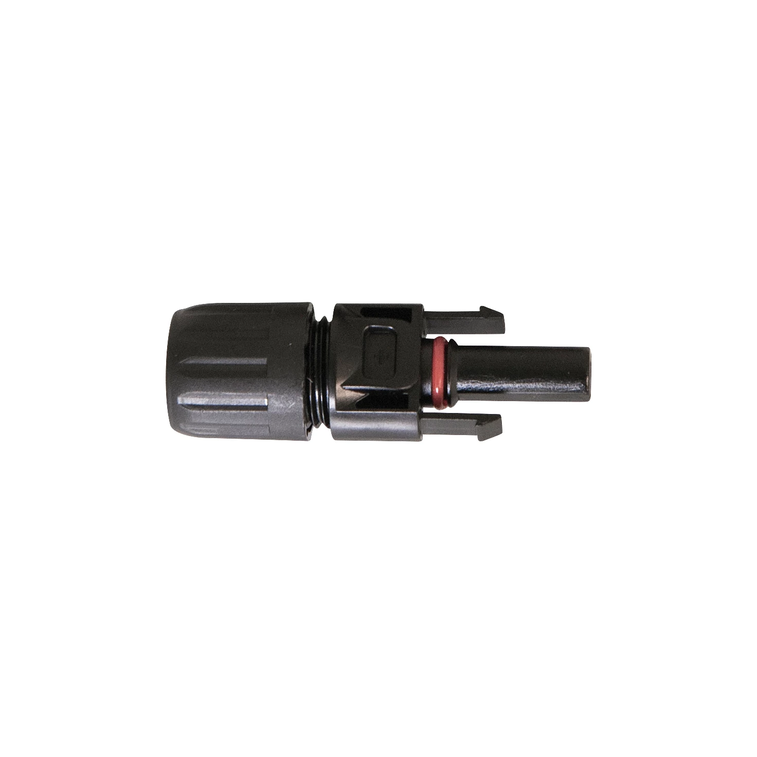Mc4 kontakt hann med dreiet hylse for best mulig kontakt mellom kabel og kontakt, man kan bruke presstang både med 4 eller 6- kantpress som er standard for sirkulære hylser.