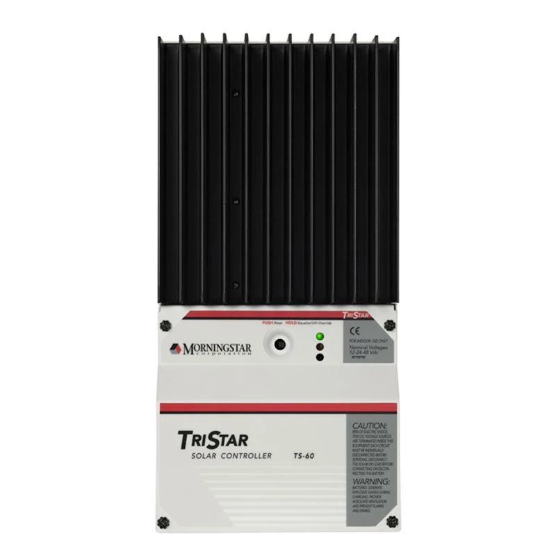 Det er mulig å tilkoble utstyr for ekstern kommunikasjon. Morningstar TS-60 bør være førstevalget i de litt større anleggene og sammen med våre kraftpakker. Dette er en regulator vi har levert i mange år til industrien. Produsert i USA.