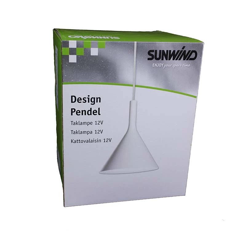 Taklampe Design Pendel er en lekker taklampe i hvitt metall. Taklampen er for 12 volt og leveres med integrert 10 watt LED-lys.