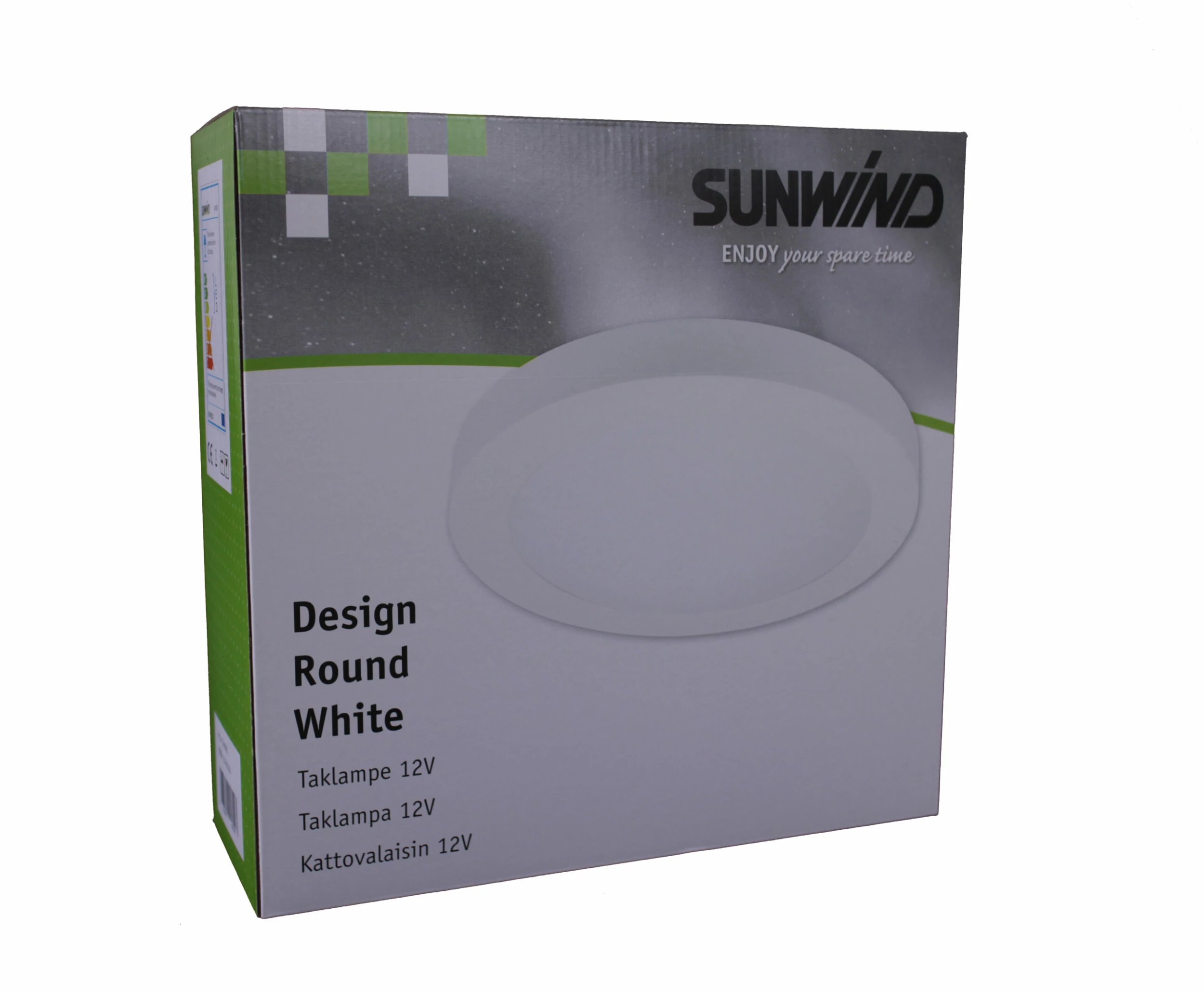 Enkel og stilren 12 volt taklampe med integrert LED lys på 4 watt. Lampen har en diameter på 28 cm.