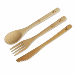 Bestikksett i tre med Bergtora-trykk. Perfekt å ha med seg på turen, eller når du sitter rundt bålpannen.